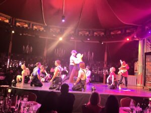 Im Rahmen unserer Kulturgruppe wurde dieses Jahr ein Weihnachtsfest organisiert, wo tatsächlich alle Mitarbeitenden- bis auf drei, die verhindert waren- teilgenommen hatten! Sowas gabs seit Jahren nicht mehr (und spricht wohl auch für eine gute Stimmung und Zusammenhalt innerhalb des Teams). Gemeinsam fuhren wir am 7. Dezember nach Gossau in den Walterzoo, wo wir freundlich begrüsst wurden mit Snacks und Prosecco. Unsere Tische waren ganz nah an der Bühne. Spannung also auf höchstem Niveau! Das 4- Gang- Essen wurde von Spitzenköchen hergestellt und schmeckte allen absolut super. Und die Artisten, die gleichzeitig auch das Servicepersonal darstellten, haben viele verschiedene Nummern gezeigt. Das Kernthema war „wie können wir ein neues, superfeines Bonbon kreieren“. Mancher Versuch misslang auf lustig gespielte Art und Weise, bis am Schluss dann doch noch das neue Bonbon aus der riesigen Maschine herausplumpste! Bravo, Applaus!!